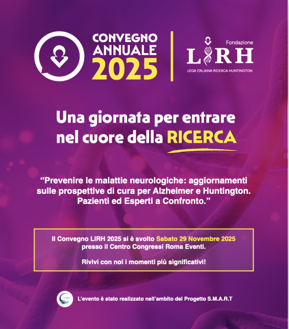 Da molti anni la Fondazione LIRH promuove una giornata completamente dedicata alla informazione sui progressi della ricerca scientifica, specificamente rivolta alle famiglie colpite dalla malattia di Huntington. La ricerca, infatti, va non solo condotta e sostenuta, ma va anche comunicata, sia quando ottiene dei successi che quando incontra ostacoli o fallimenti. L'importante è farlo in maniera corretta e comprensibile anche ai 'non addetti ai lavori'.